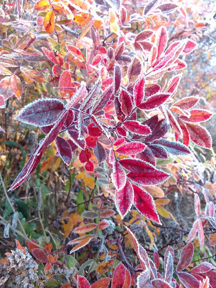 Apples, elderberry, thyme, siberian ginseng and hawthorne. Juniper tucked into the windy cliffs between the lichen. Visit the abandoned lots, gardens, and graveyards. Put leaves on the freshly planted garlic.